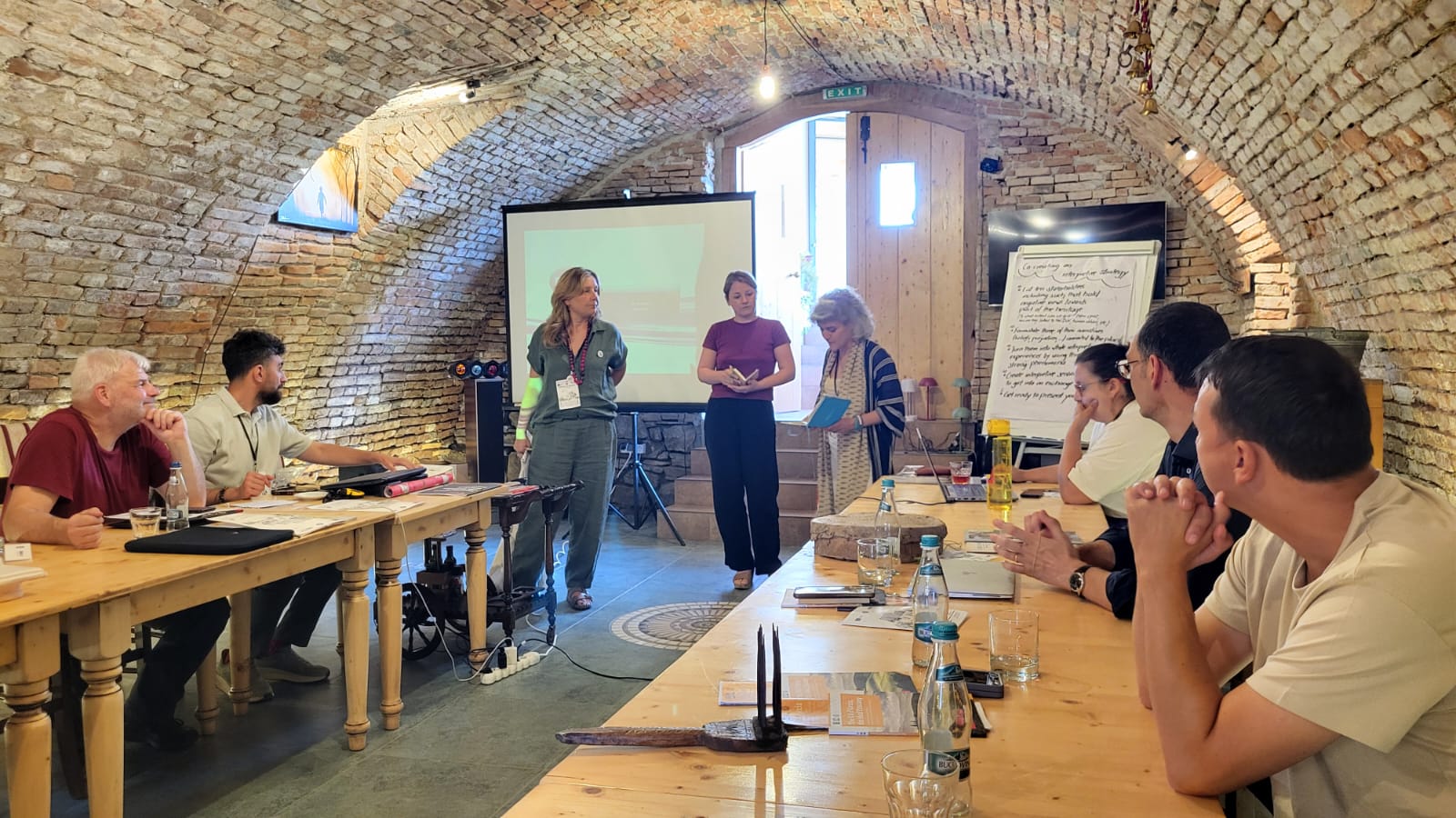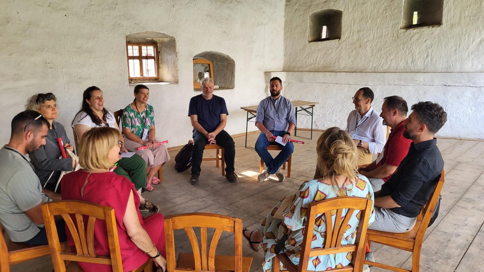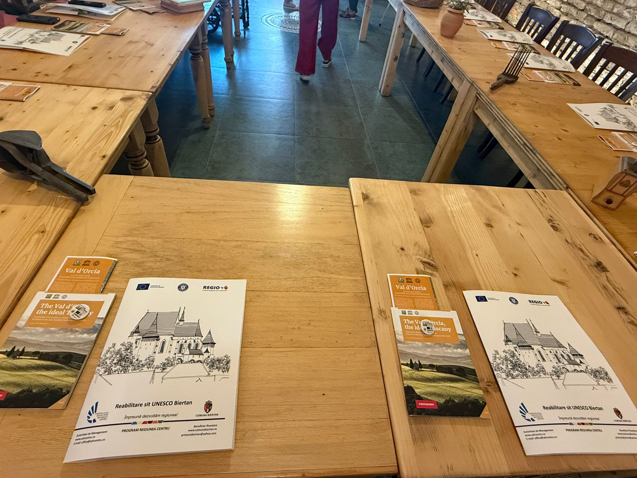 În cadrul întâlnirii au avut loc și sesiuni speciale de formare cu tema 𝐌𝐞𝐭𝐨𝐝𝐞 𝐢𝐧𝐨𝐯𝐚𝐭𝐢𝐯𝐞 𝐝𝐞 𝐢𝐧𝐭𝐞𝐫𝐩𝐫𝐞𝐭𝐚𝐫𝐞 𝐢̂𝐧 𝐬𝐢𝐭𝐮𝐫𝐢𝐥𝐞 𝐝𝐞 𝐩𝐚𝐭𝐫𝐢𝐦𝐨𝐧𝐢𝐮 𝐦𝐨𝐧𝐝𝐢𝐚𝐥 𝐔𝐍𝐄𝐒𝐂𝐎, cu accent pe implicarea comunităților locale în analiza și dezvoltarea instrumentelor de interpretare, conduse de Thorsten Ludwig specialist cu o vastă experiență și trainer certificat din partea organizației Interpret Europe. Agenda a inclus și vizite la bisericile fortificate din comună și crama Biertan, prânzuri la punctele gastronomice locale, sesiune de discuții și schimb de experiențe cu operatorii turistici locali, precum și explorarea siturilor rurale Viscri și Saschiz.