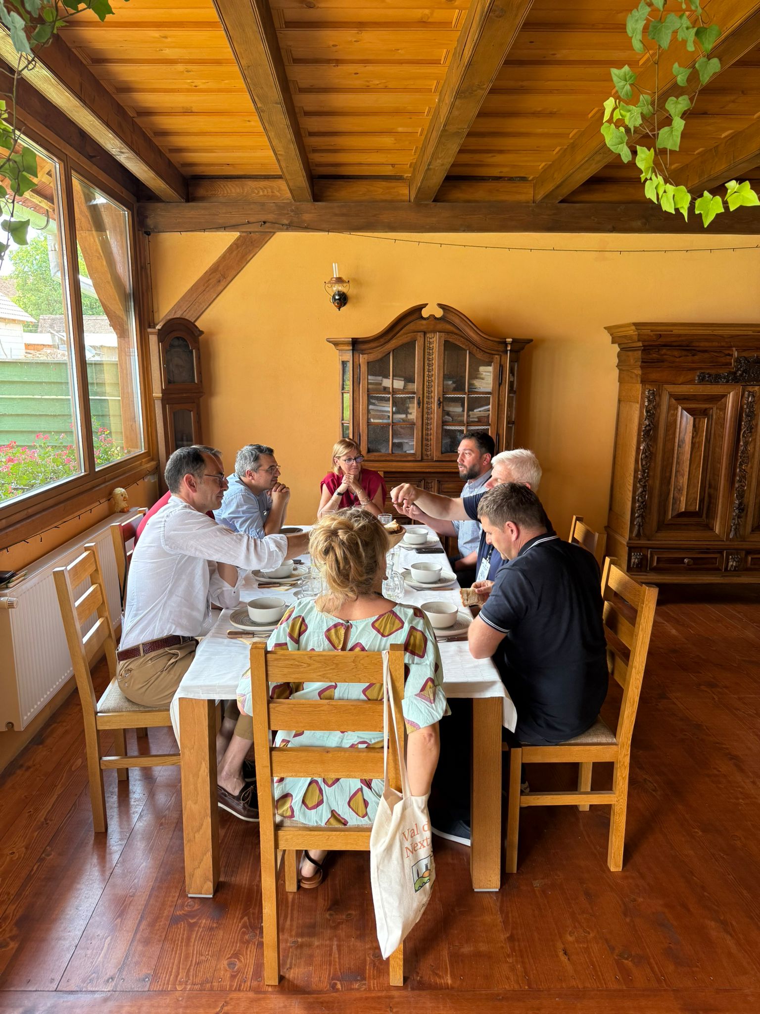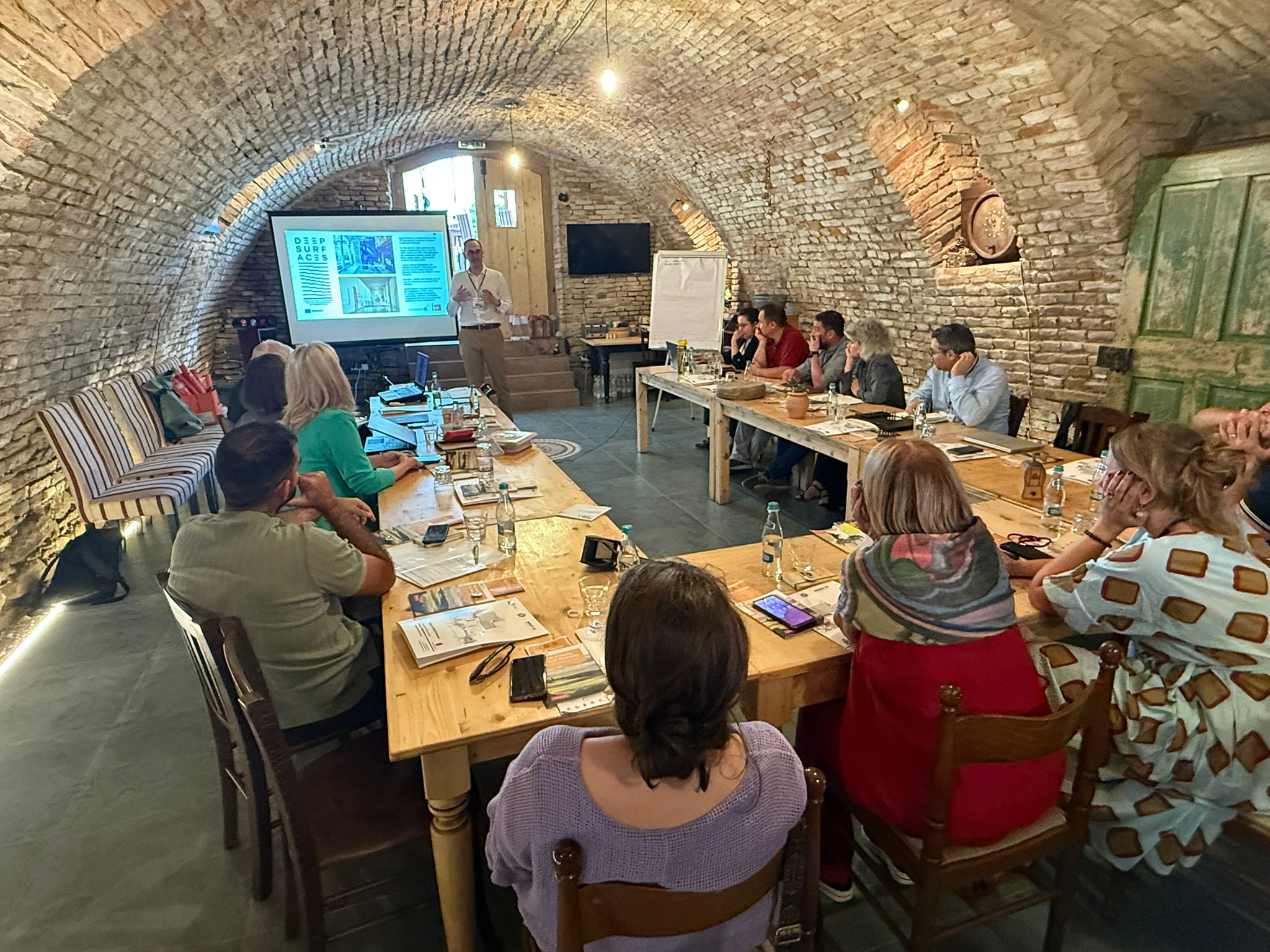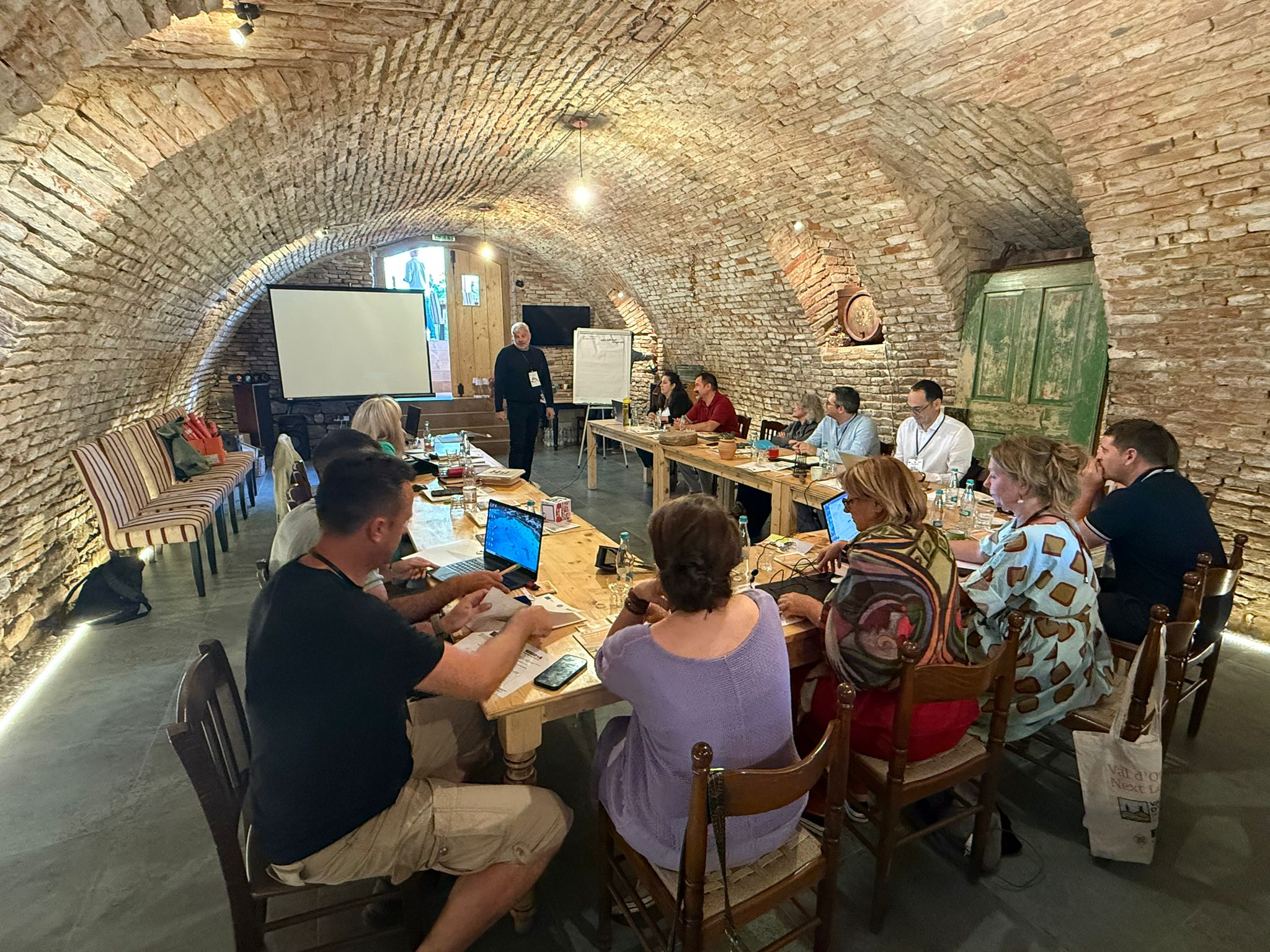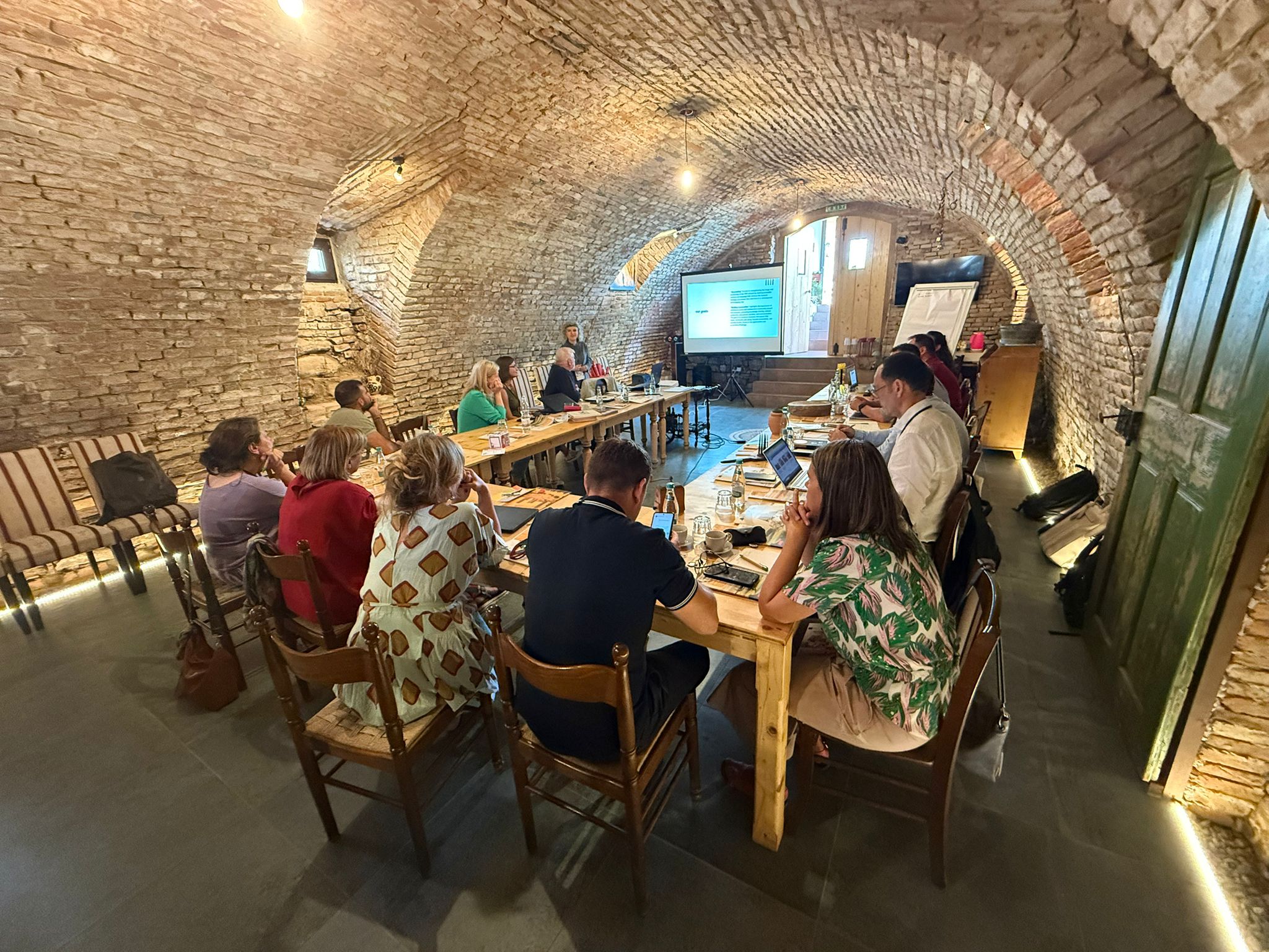 În cadrul întâlnirii au avut loc și sesiuni speciale de formare cu tema 𝐌𝐞𝐭𝐨𝐝𝐞 𝐢𝐧𝐨𝐯𝐚𝐭𝐢𝐯𝐞 𝐝𝐞 𝐢𝐧𝐭𝐞𝐫𝐩𝐫𝐞𝐭𝐚𝐫𝐞 𝐢̂𝐧 𝐬𝐢𝐭𝐮𝐫𝐢𝐥𝐞 𝐝𝐞 𝐩𝐚𝐭𝐫𝐢𝐦𝐨𝐧𝐢𝐮 𝐦𝐨𝐧𝐝𝐢𝐚𝐥 𝐔𝐍𝐄𝐒𝐂𝐎, cu accent pe implicarea comunităților locale în analiza și dezvoltarea instrumentelor de interpretare, conduse de Thorsten Ludwig specialist cu o vastă experiență și trainer certificat din partea organizației Interpret Europe. Agenda a inclus și vizite la bisericile fortificate din comună și crama Biertan, prânzuri la punctele gastronomice locale, sesiune de discuții și schimb de experiențe cu operatorii turistici locali, precum și explorarea siturilor rurale Viscri și Saschiz.